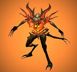 The Riftgate Nexus inside the Black Citadel begins to emit crackling purple electricity, and gears and assorted other moving parts spring to life. Commander Protoh sees this, and calls Shadow over. Shadow follows, still mounted atop his throne, riding on the Lord of Skull Spiders. Shadow grins as he surveys the intricate workings of his troop-summoning station. "AH, EXCELLENT! NOW, I SUPPOSE THE INFERNAL COMMANDER COULD DO WITH SOME SOLDIERS TO ACTUALLY COMMAND. PROTOH! MAKE IT HAPPEN!" Commander Protoh hits the switch, and an army of Draconians equipped similarly to Ichigo and Terror