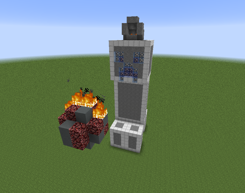 This is my imagination of the fireball fired by the C-Mech, composed of Netherrack and Gunpowder, it doesn't leave many flames, but it can devastate an area just as much as any other explosive.